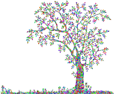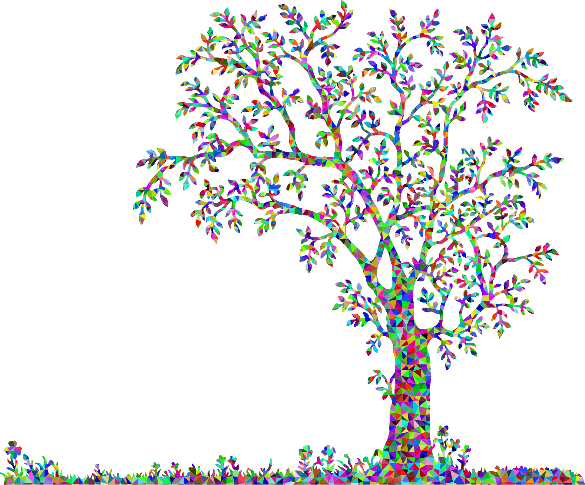 Low Poly Prismatic Tree And Flowers