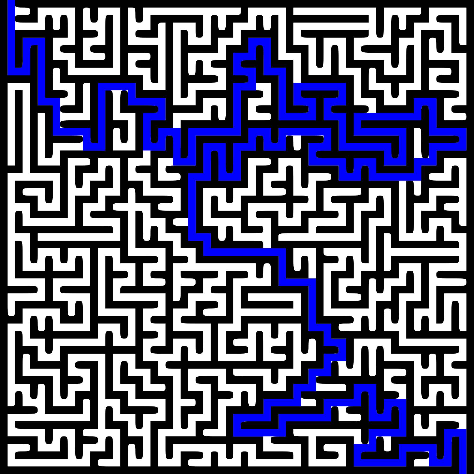 The solution to the straight version of the maze puzzle.