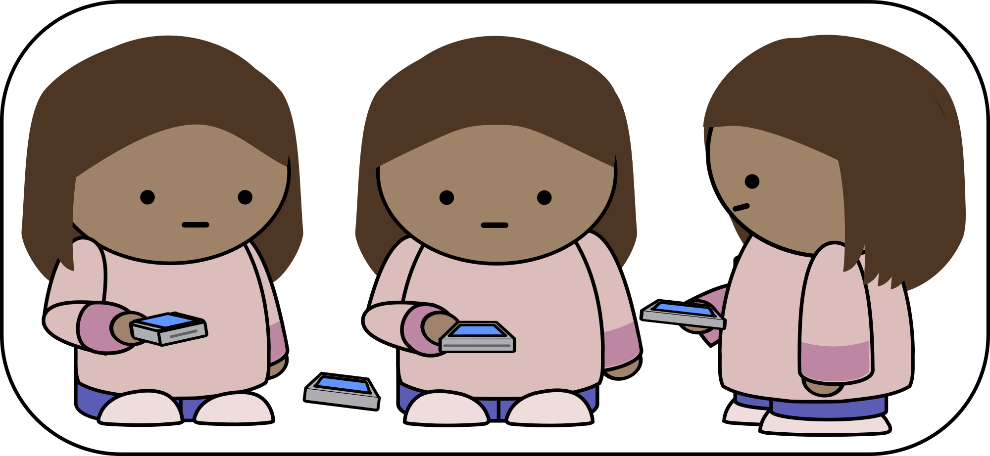 Three views of a girl looking at her phone.