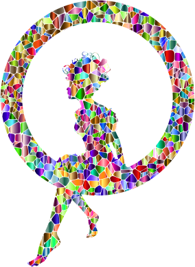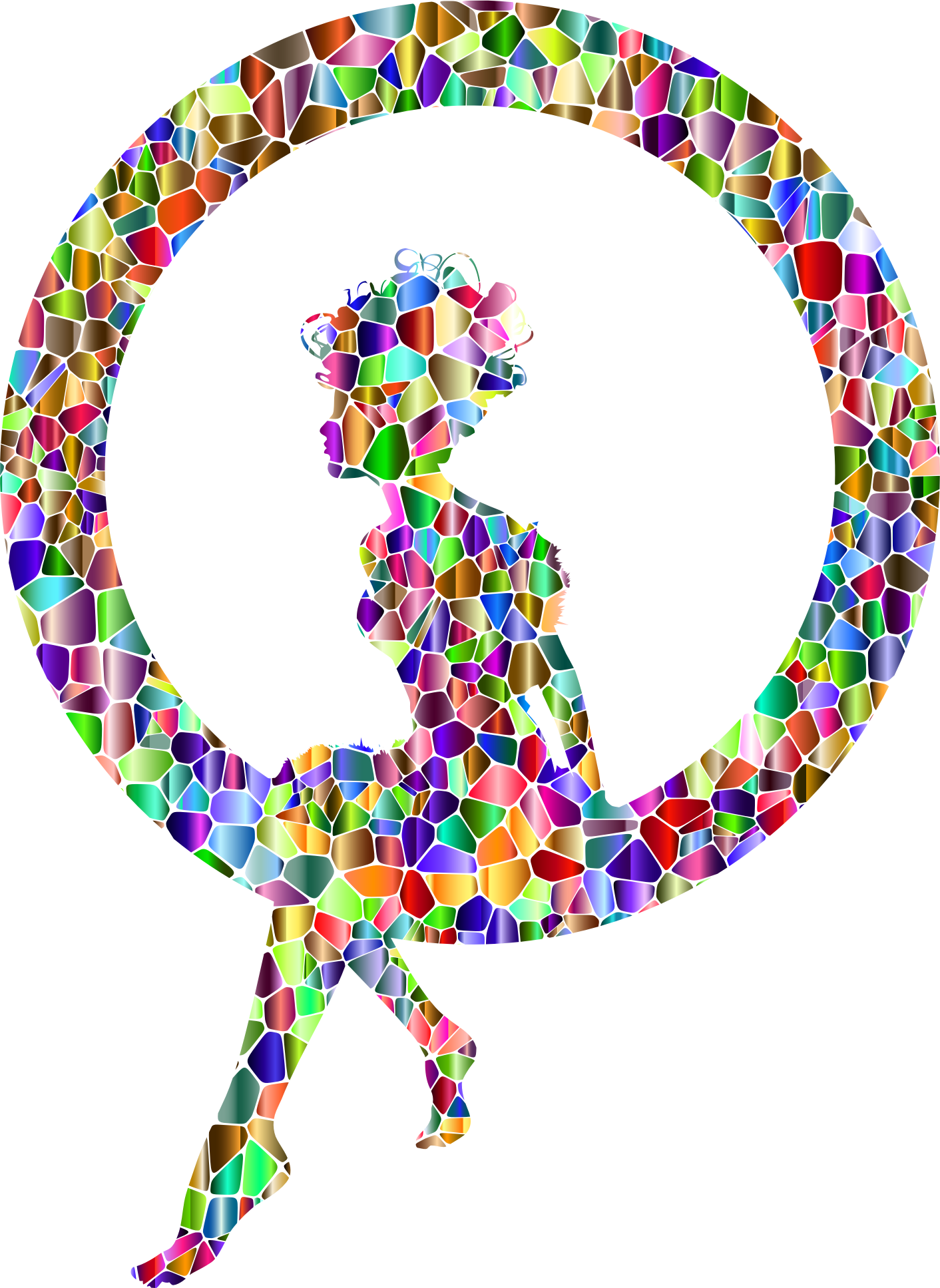 Polychromatic Tiled Fairy Sitting In A Circle Silhouette