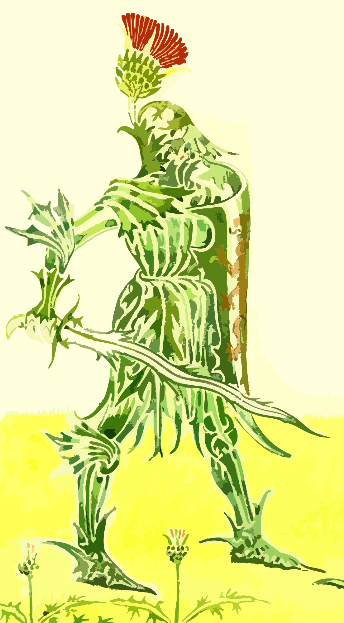 Half knight, half thistle. From a drawing in 'A Floral Fantasy in an Old English Garden', Walter Crane, 1899.