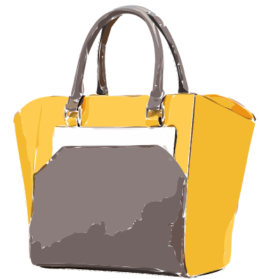 A yellow tan big bag with a logo removed.