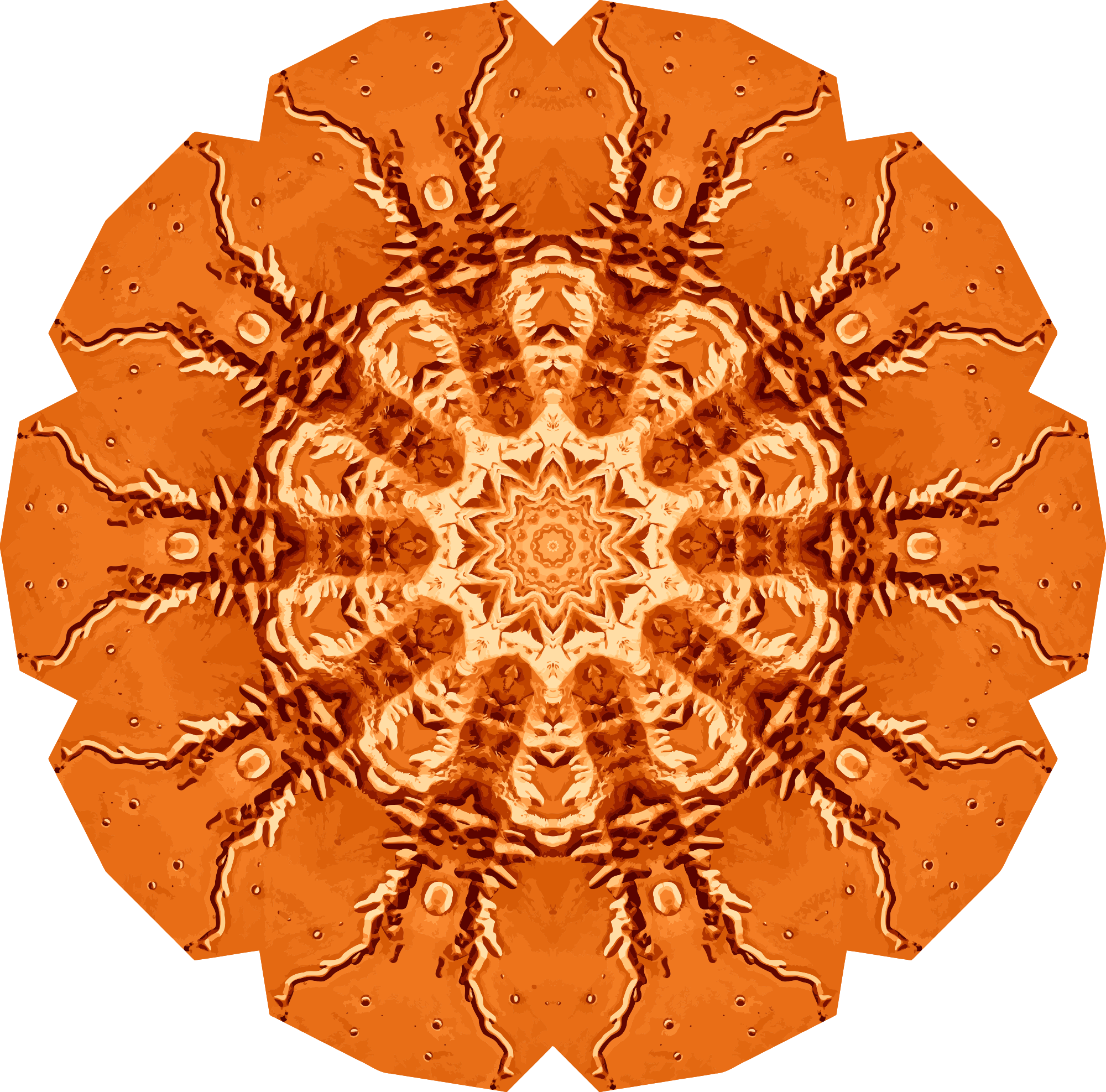 A design with approximate rotational symmetry the starting point for which was a NASA photograph of the Velles Marineris on Mars.