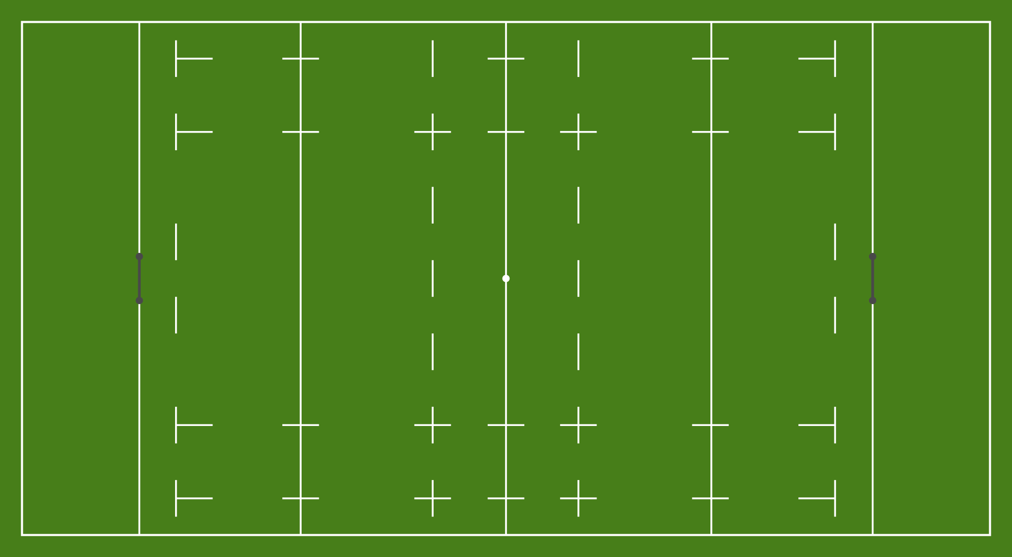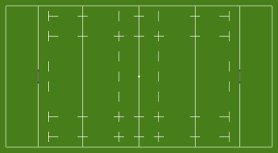 A rugby union pitch with typical relative dimensions.