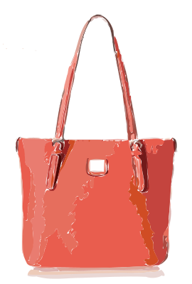 An orangish red leather handbag.