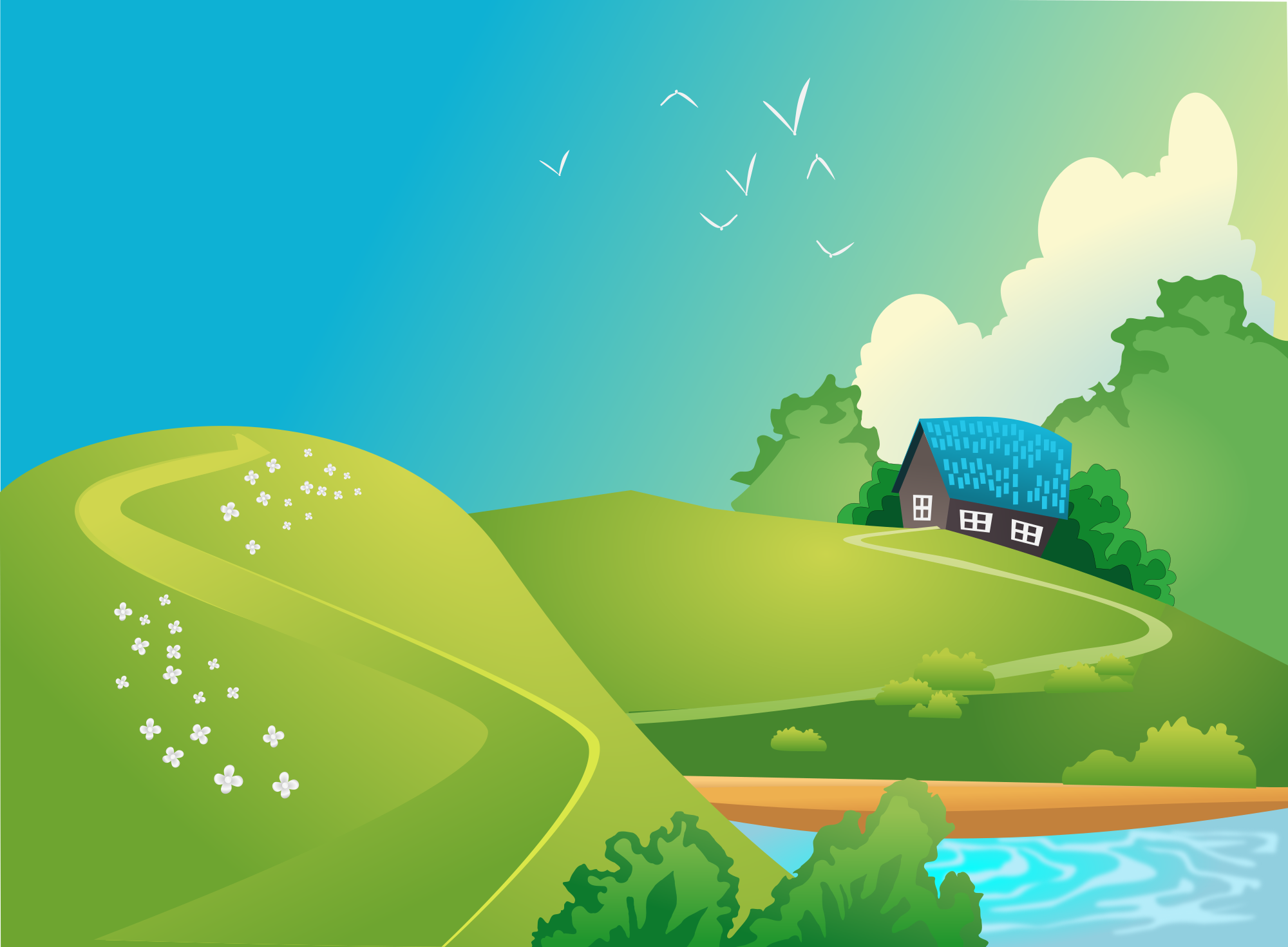 Same as original but with square borders, a slightly larger view and no windmill.