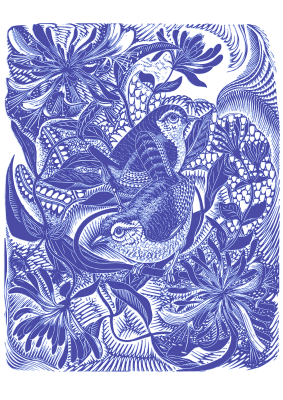 Vintage birds in forest (blur effect).