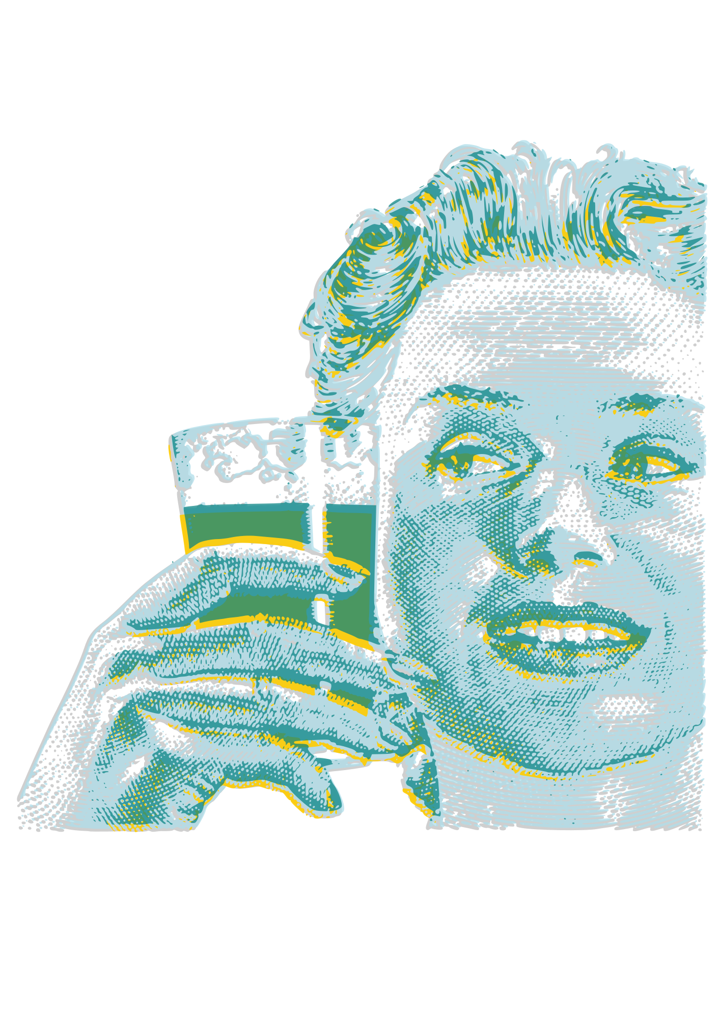 - Drinking Happy Semi-Realistic People Vintage Woman