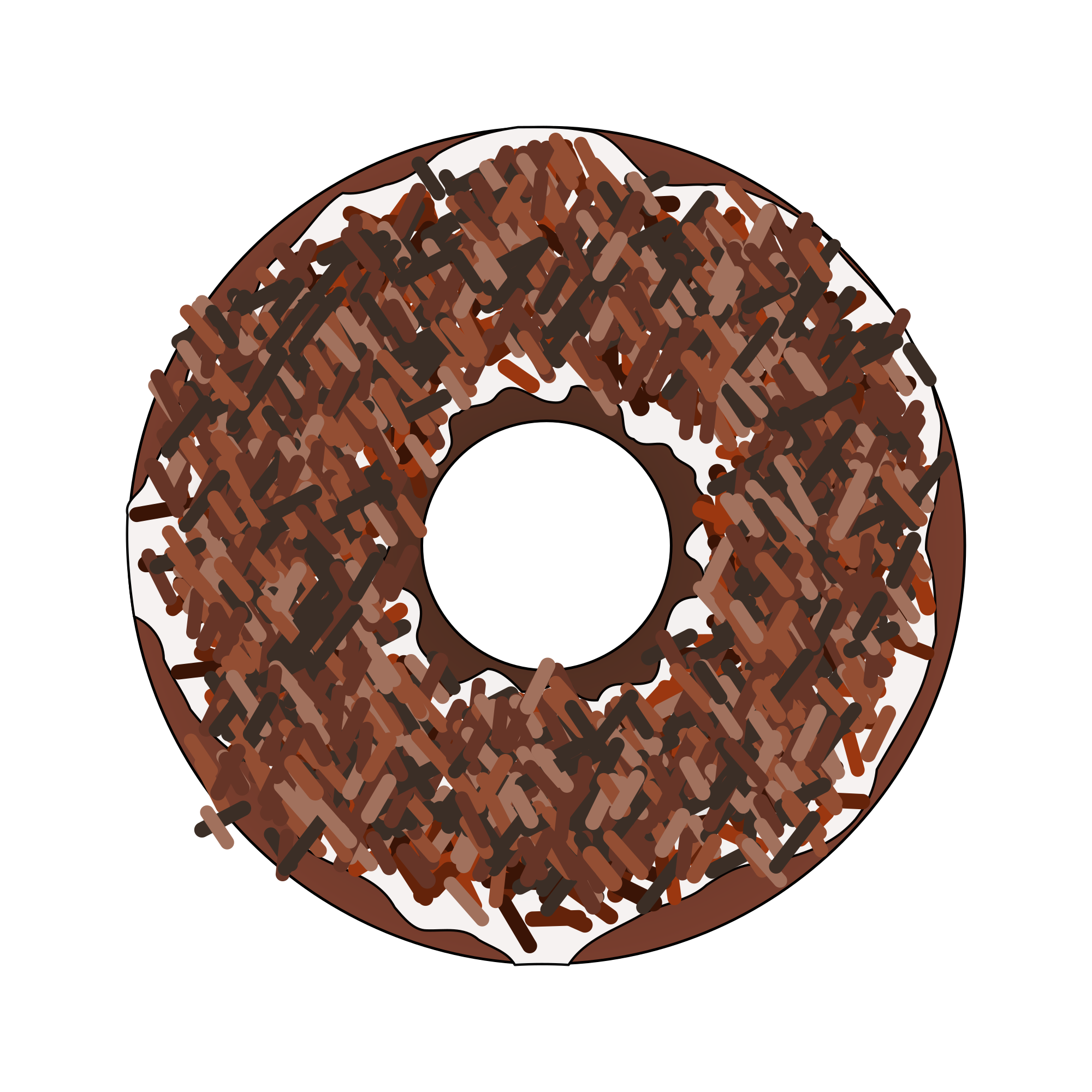 A chocolate donut with tooooo many brown sprinkles.