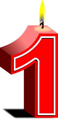 Red birthday candle in the shape of number one.