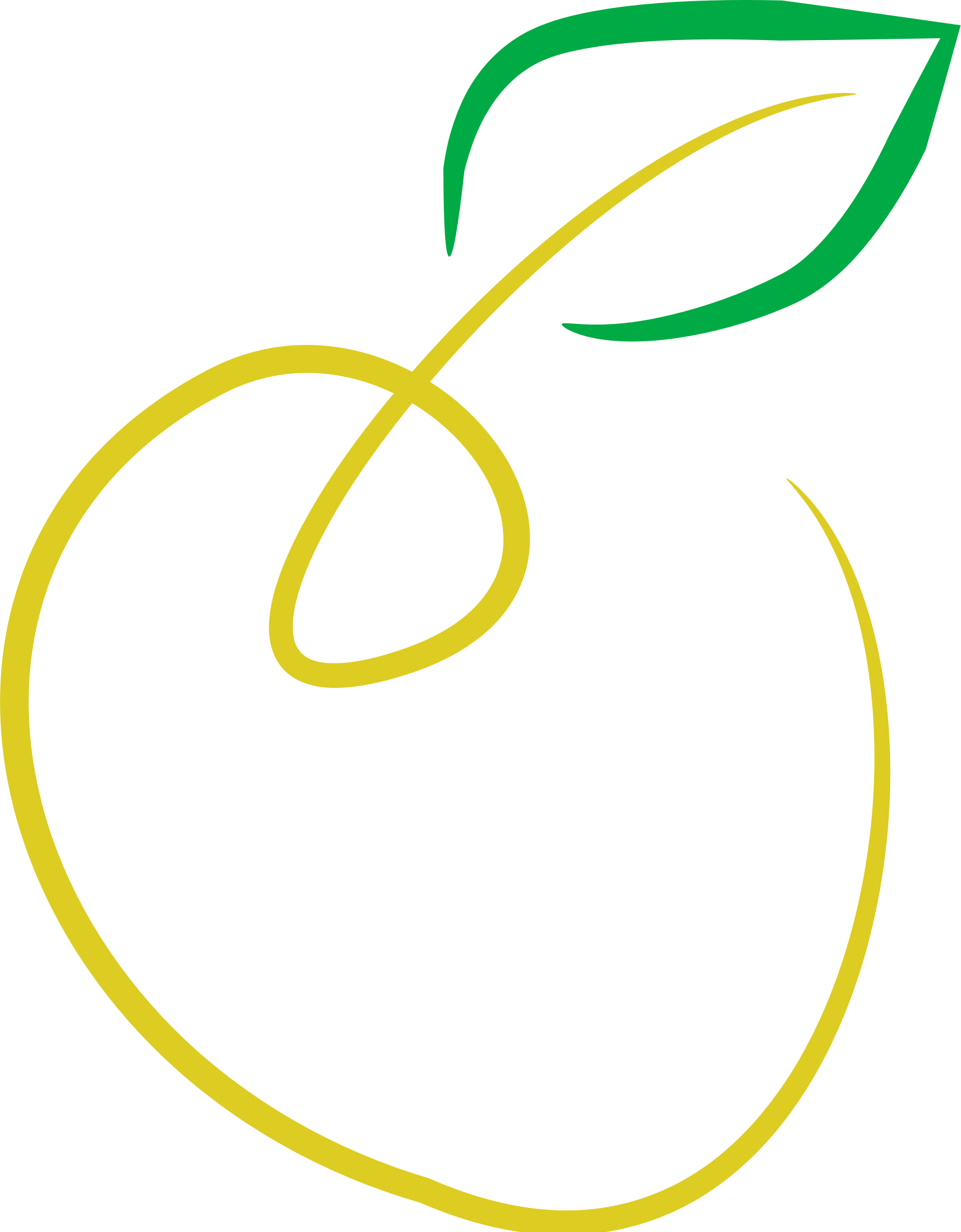 Brush drawing of a yellow apple.