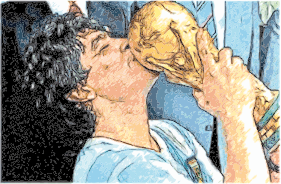 Diego Maradona Besando la Copa del Mundo