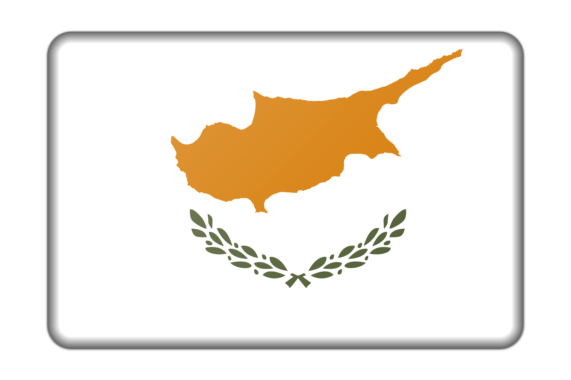 A bevelled version of the flag of Cyprus. Adapted from a public domain drawing sourced from Wikimedia Commons.