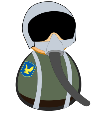 Stylized fighter pilot icon with hhelmet, big black glasses and falcon styled patch.