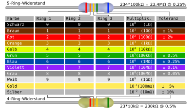 THT Resistor color code table (German version)