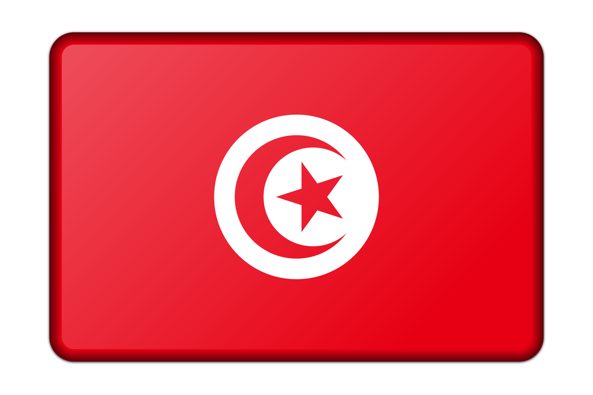 A bevelled version of the flag of Tunisia. Adapted from a public domain drawing sourced from Wikimedia Commons.