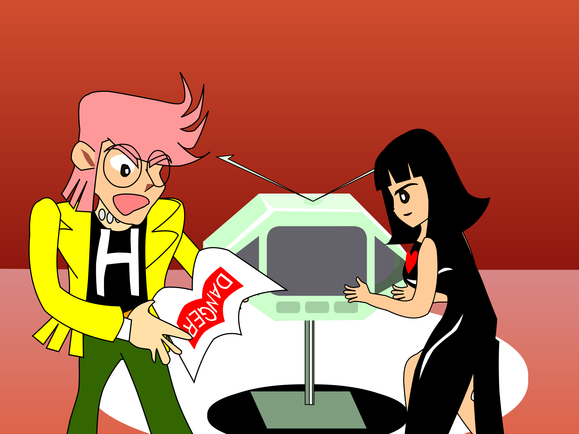 A girl turned on the power of danger TV.Animated by 2D key-frame animation editor 9VAe.(http://codepen.io/danjiro/post/9vae-introduction)