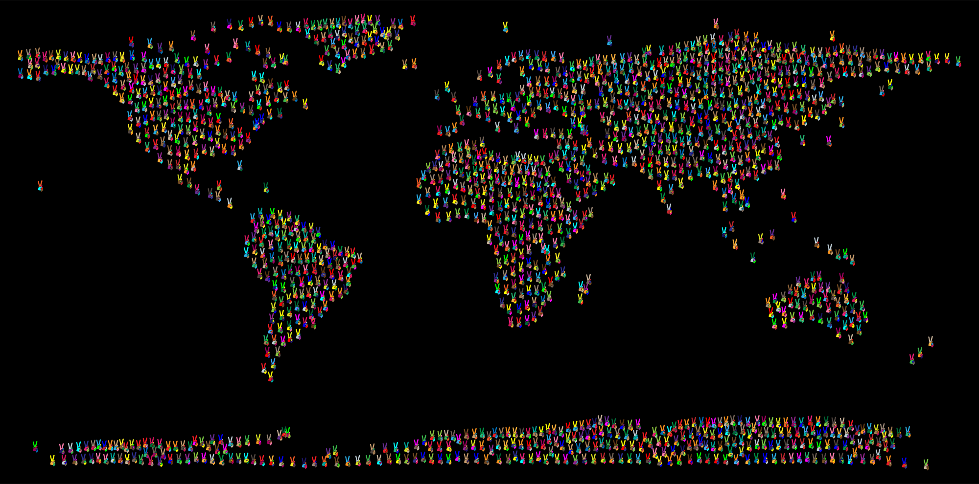 Prismatic Peace Sign Silhouette Smoothed World Map