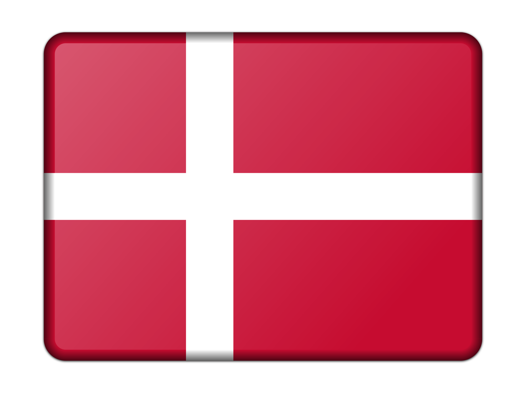A bevelled version of the flag of Denmark. Adapted from a public domain drawing.