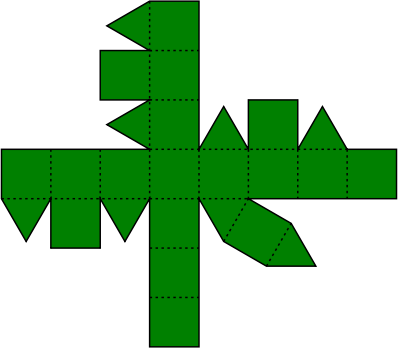 Print this out to a sheet of paper, cut out along the solid lines, fold along the dashed lines, affix a transparent tape, and you’ll have a rhombicuboctahedron.
