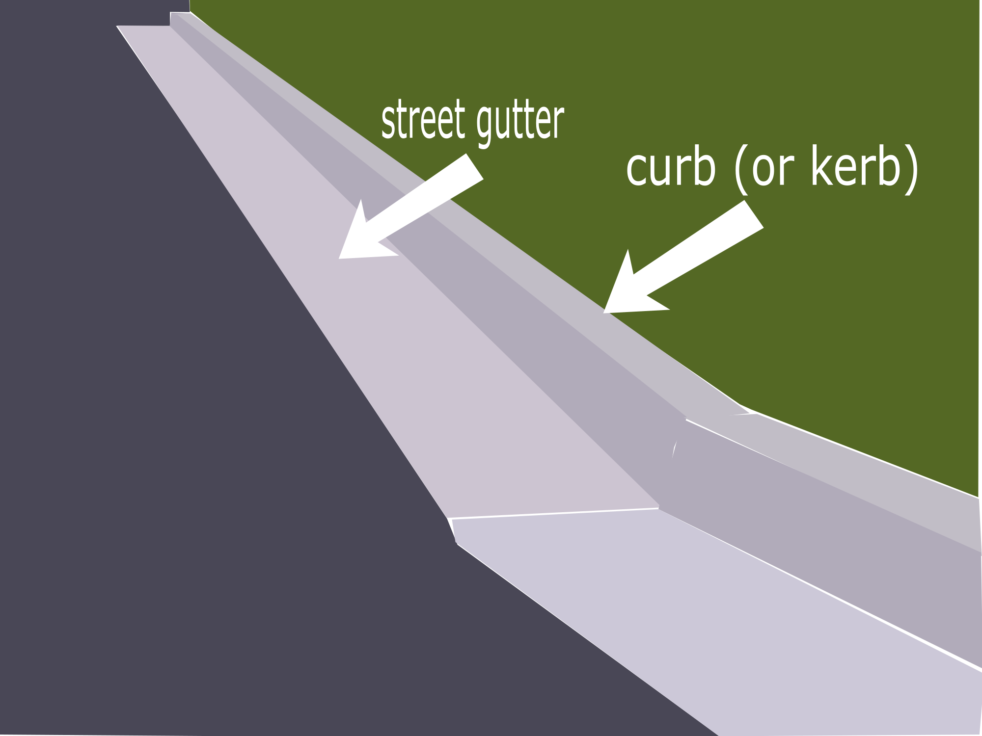 The image depicts a curb (or kerb) and a street gutter.