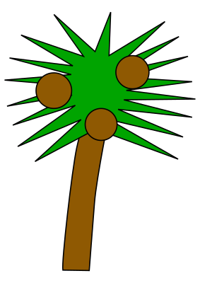 A spiky palm tree with coconuts.