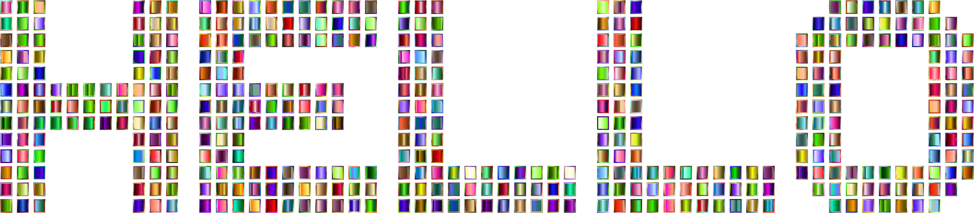 - Chromatic Colorful Decorative English Greeting Hello Mosaic Ornamental Prismatic Rainbow Squares Text Type Typography Words