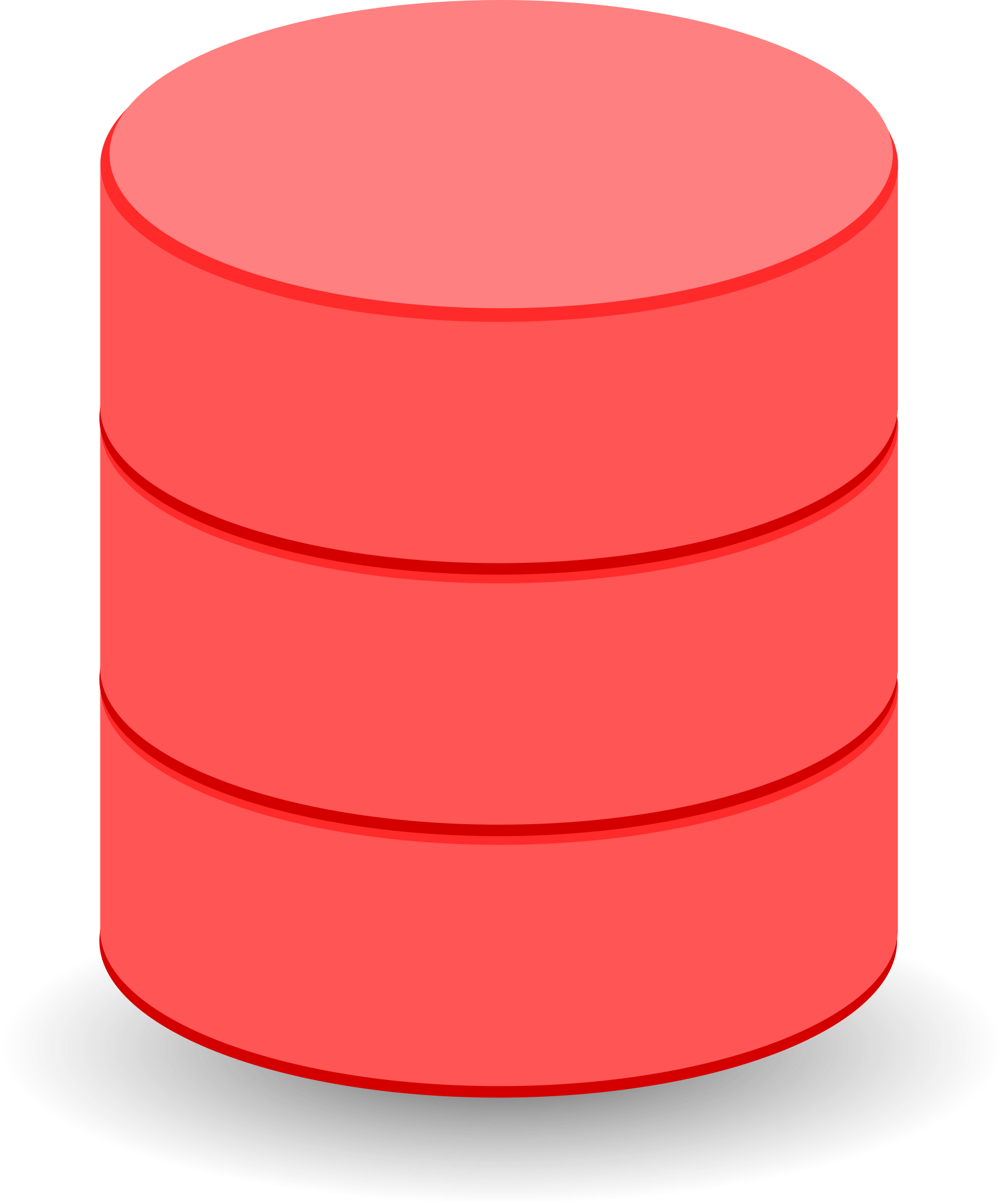 A red version of a hard disk cylinder usually representing a database.
