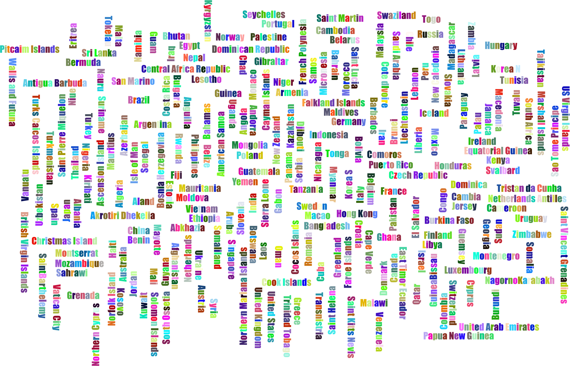 World Countries Word Cloud Variation 2 No Background