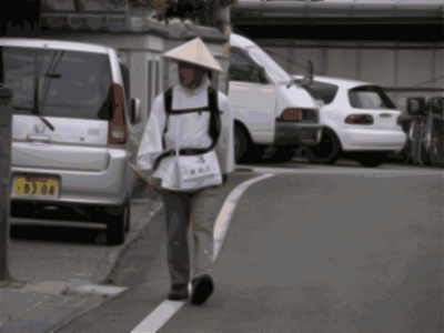 The image is a pilgrim walker on the island of Shikoku,Japan.