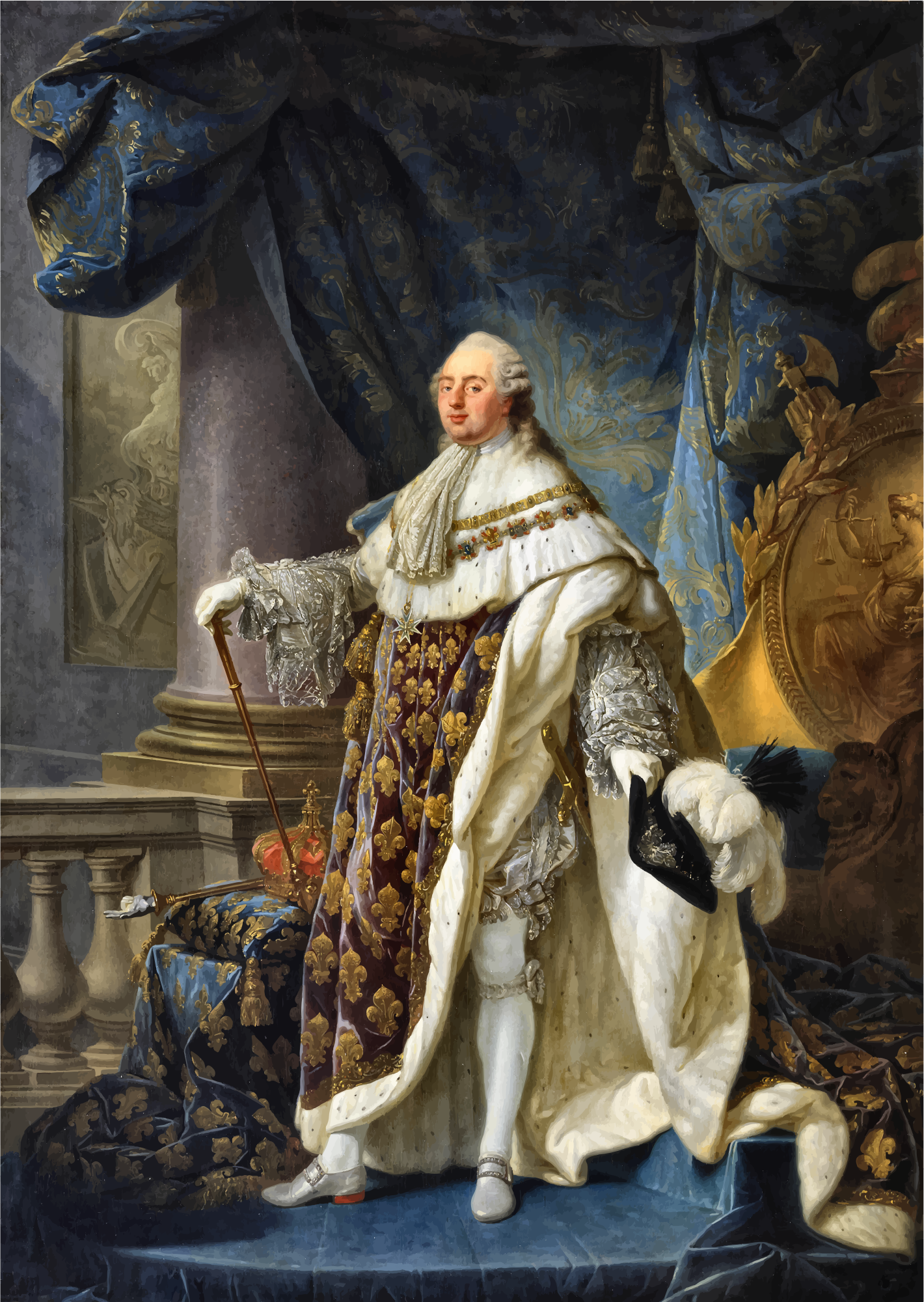 Louis XVI Portrait By Antoine Francois Callet. https://en.wikipedia.org/wiki/File:Antoine-Fran%C3%A7ois_Callet_-_Louis_XVI,_roi_de_France_et_de_Navarre_%281754-1793%29,_rev%C3%AAtu_du_grand_costume_royal_en_1779_-_Google_Art_Project.jpg