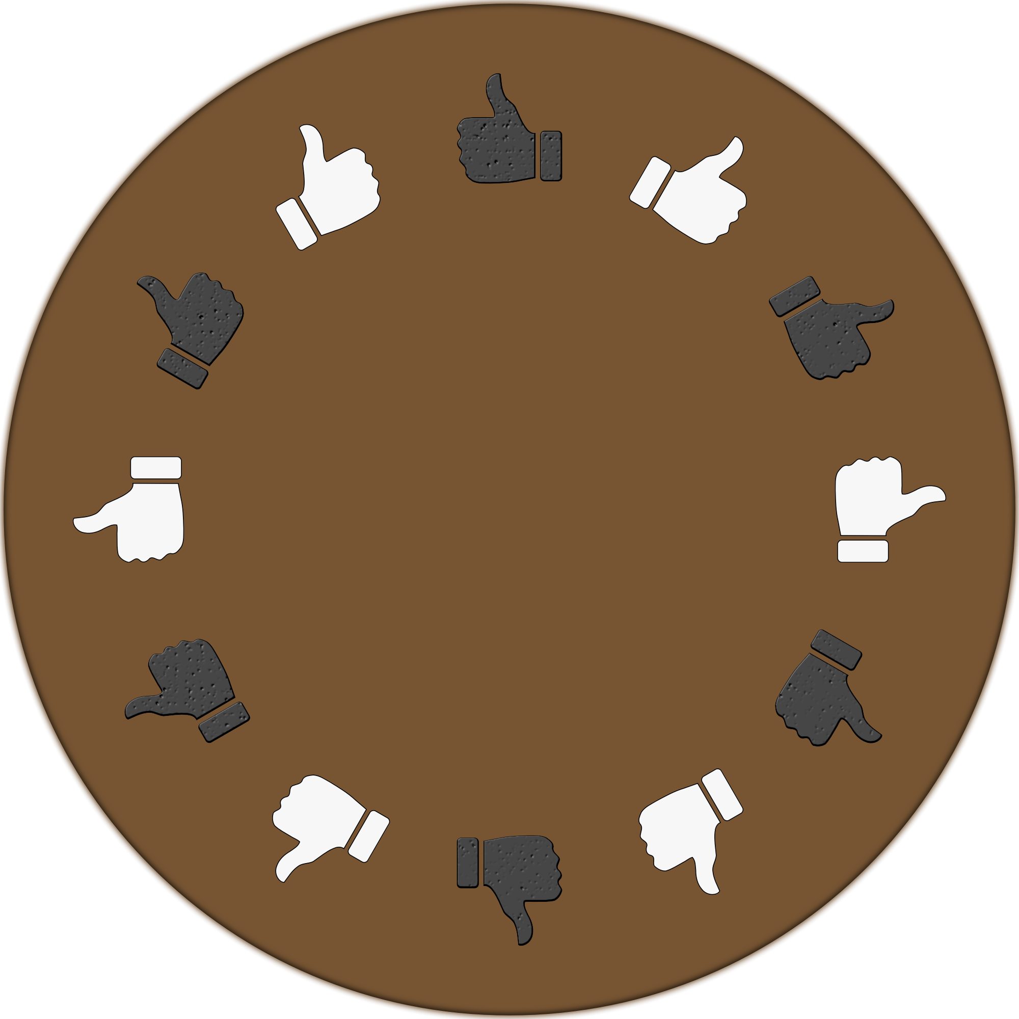 The round table made up from a dozen of thumbs-up symbols. This one includes both, right-handed and left-handed, knights.