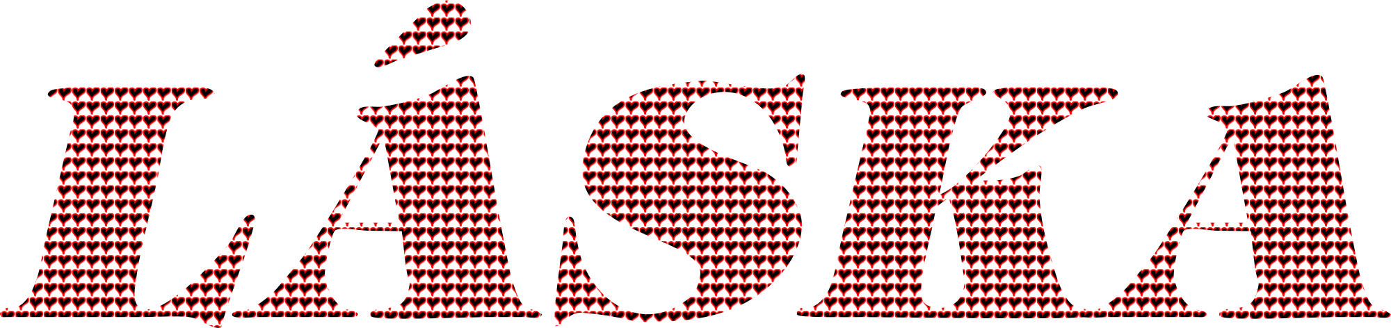 The word Láska (Love in Slovak and in Czech) filled with a pattern of hand-drawn hearts.