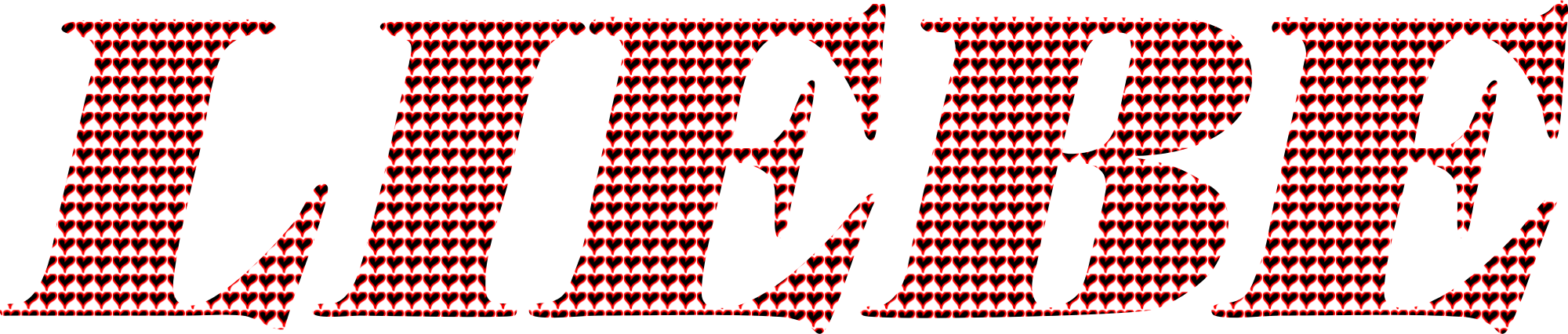 The word Liebe (Love in German) filled with a pattern of hand-drawn hearts.