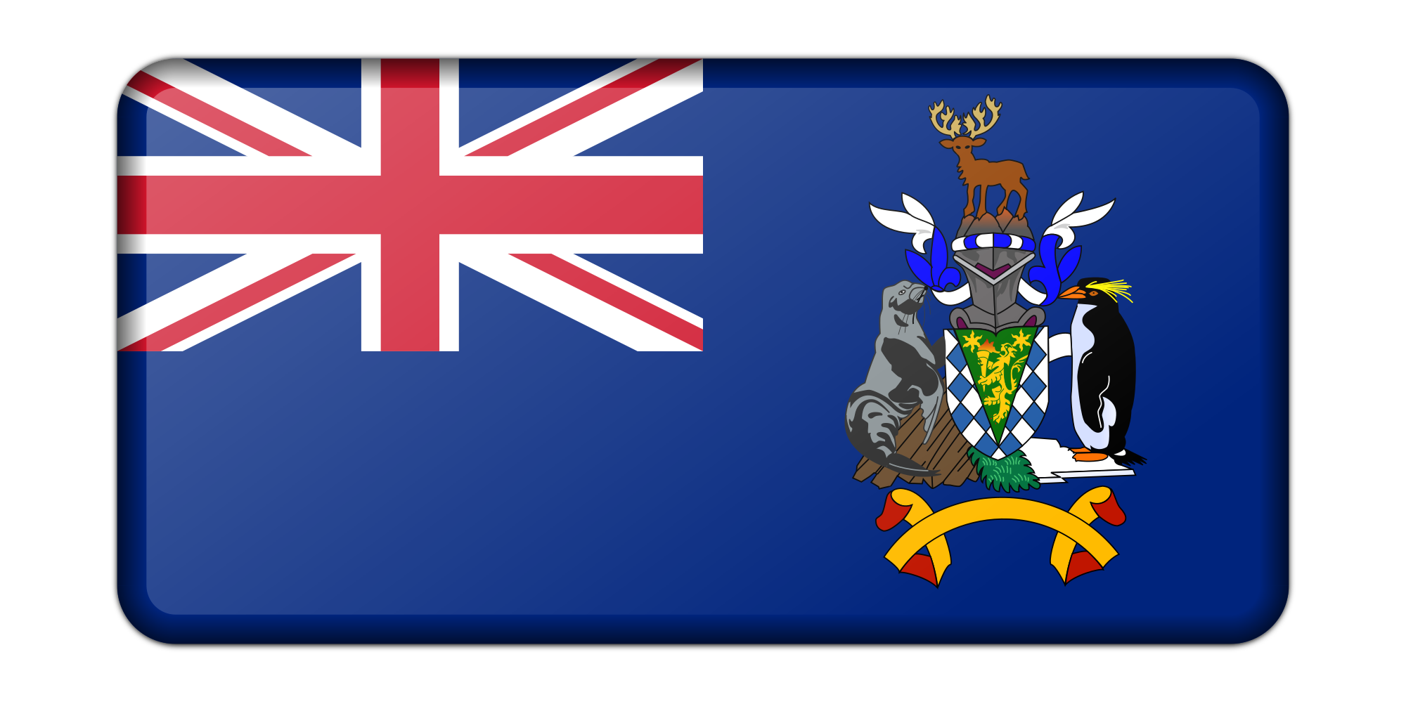 A bevelled version of the flag of South Georgia and South Sandwich Islands. Adapted from a public domain drawing.