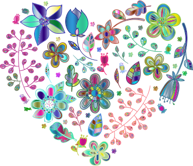 Prismatic Psychedelic Floral Heart No Background