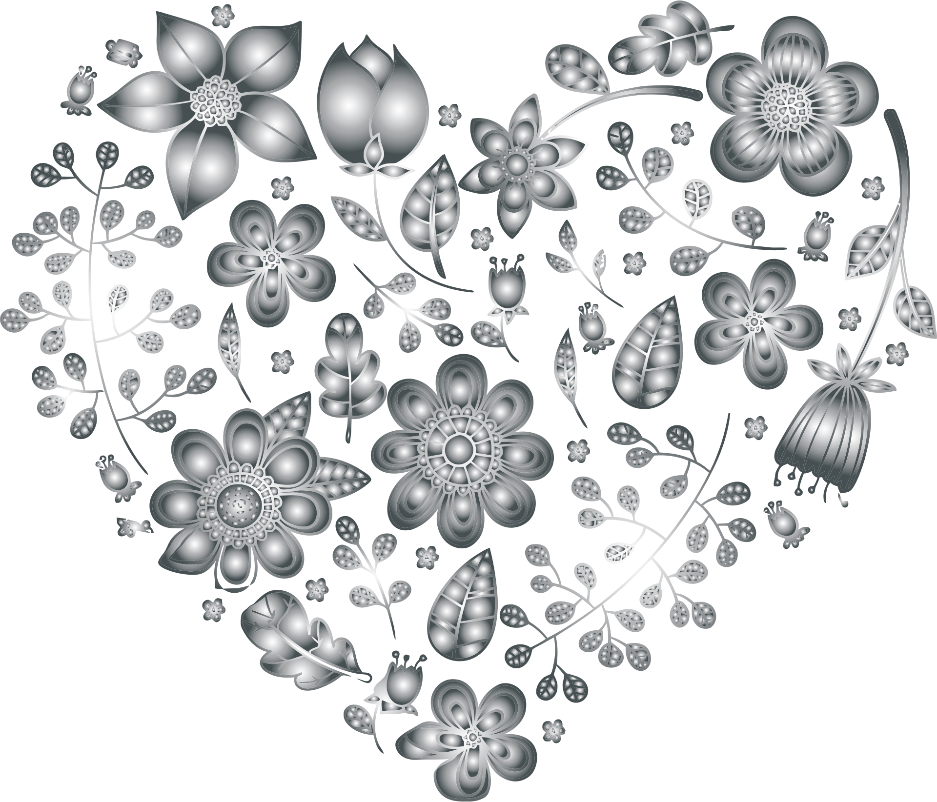 Grayscale Floral Heart 3 No Background