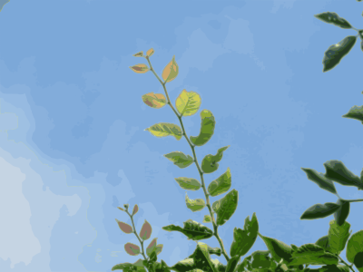 The image depicts the branches shooting out toward the sky in the summer.