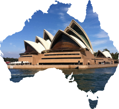 Sydney opera house image in the shape of Australia