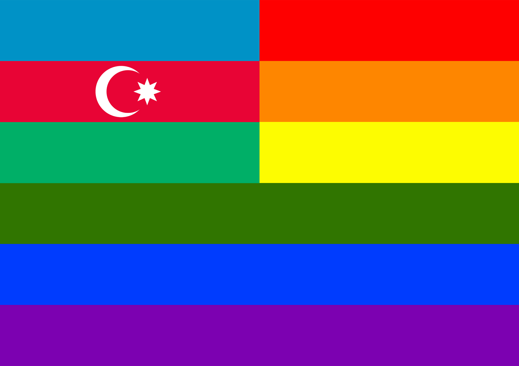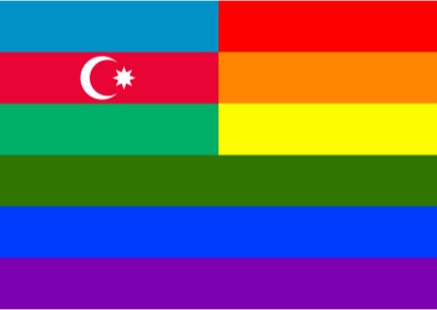 Flag of Azebaijan in front of rainbow flag.