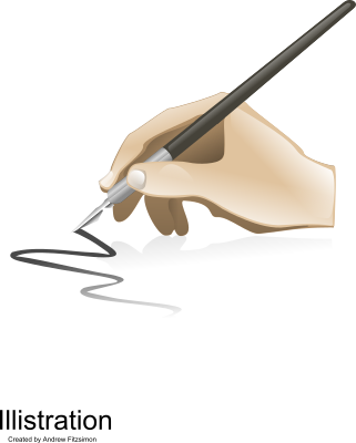 A hand holding a pen doing some calligraphy or an illustration.