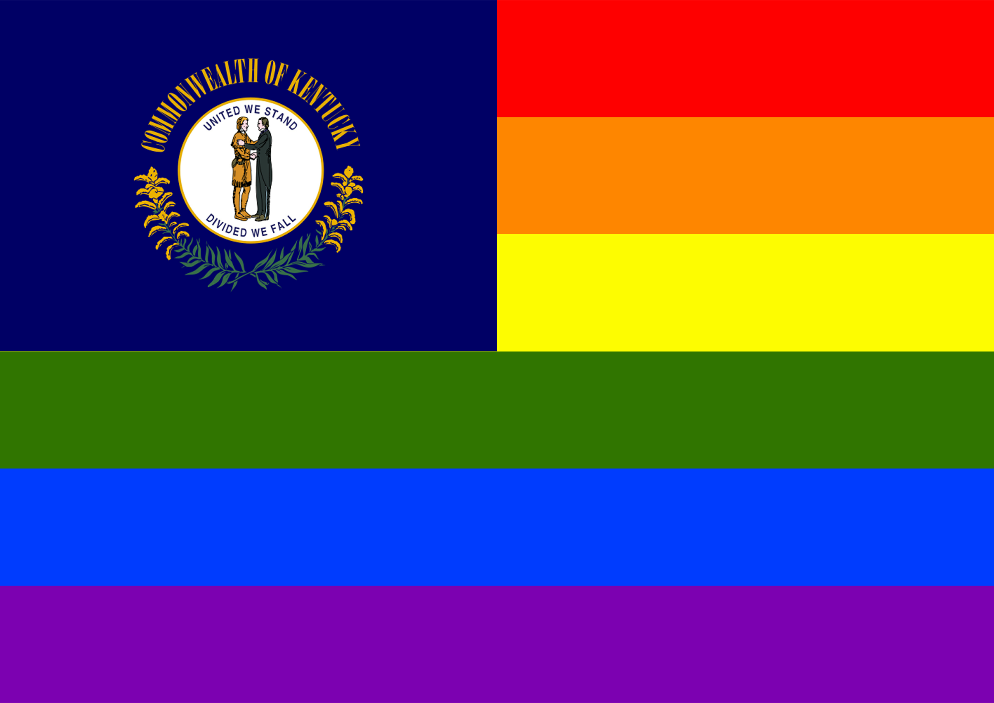 Flag of Kentucky in front of rainbow flag.