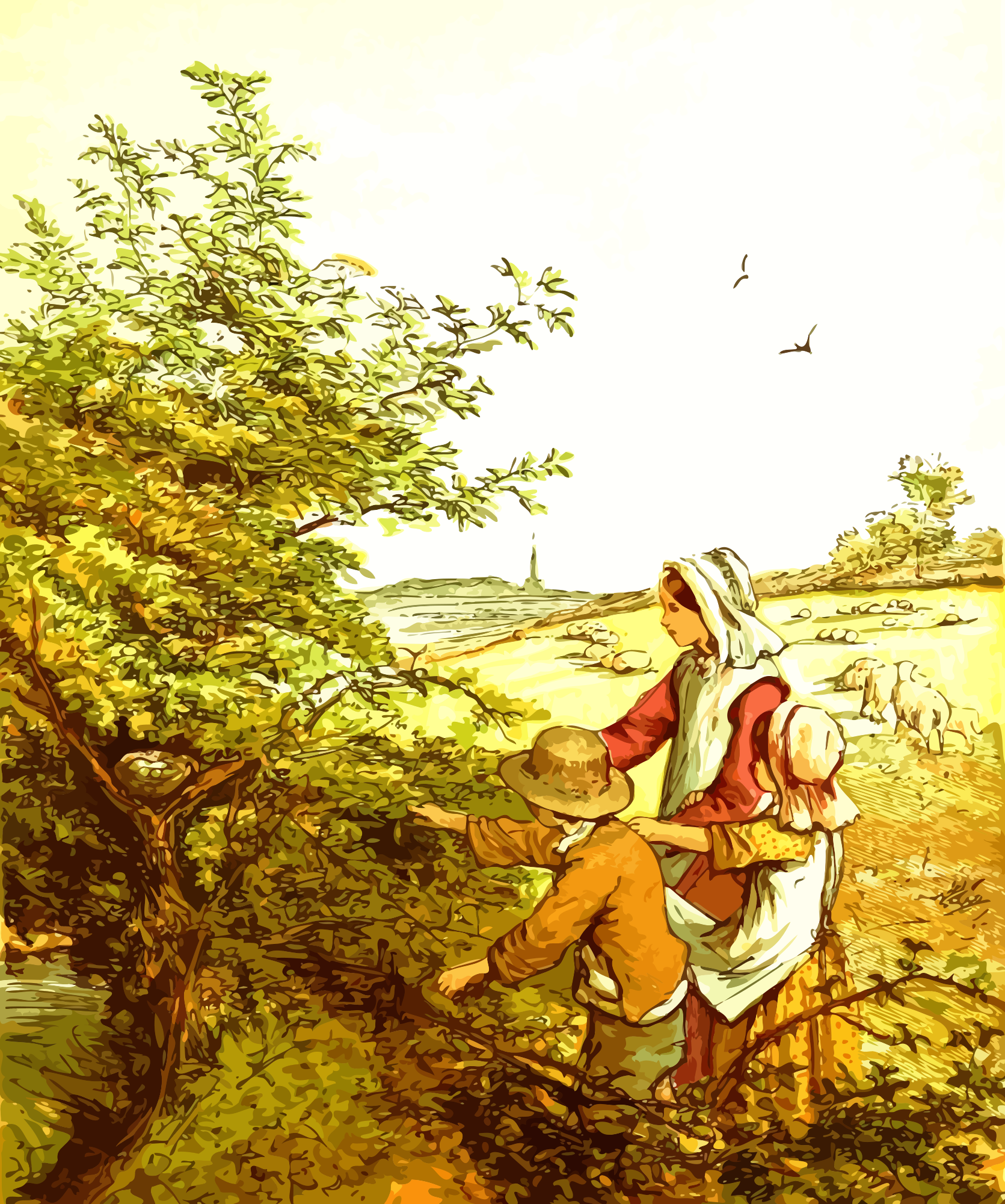 - Semi-Realistic People children country countryside egg nest scene
