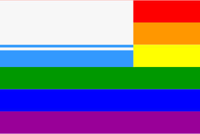 The Altai flag superimposed over the rainbow flag.