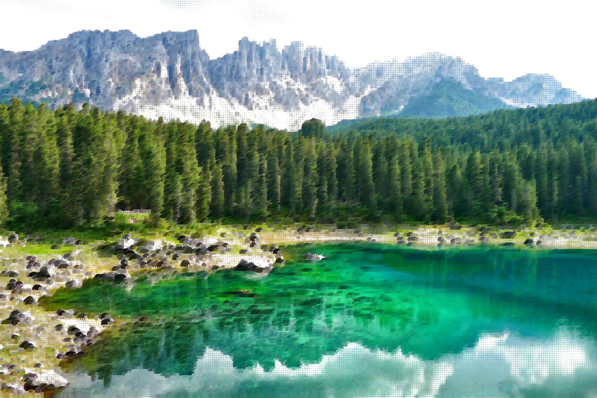 - Abstract Art Circles Dots Forest Geometric Germany Lake Landscape Mosaic Mountains Nature Photograph Source+Pixabay Surreal Water