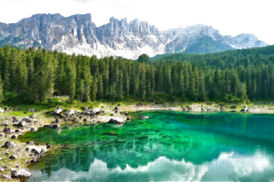 Surreal Bergsee Lake Germany derived from an image on Pixabay.