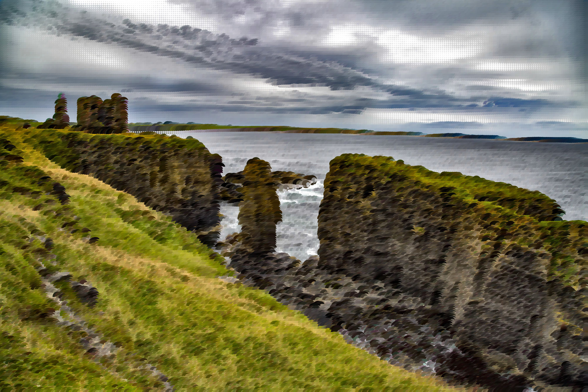 - Abstract Art Circles Clouds Coast Dots Dreary Geometric Landscape Mosaic Nature Ocean Photograph Scotland Sea Sky Source+PDP Surreal Water