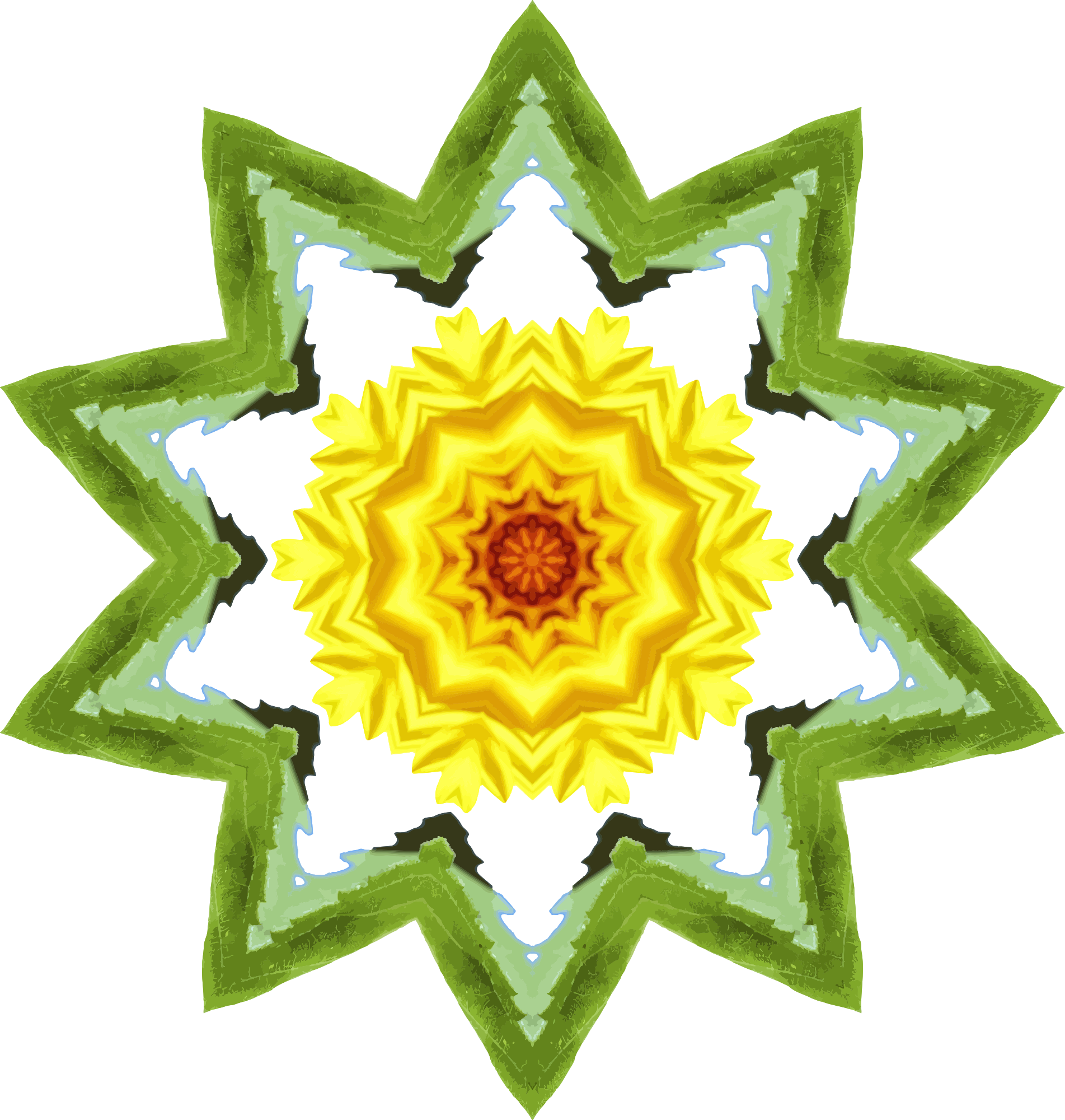 Drawn from a Pixabay image of a sunflower using the kaleidoscope plug-in in Paint.net and vectorised in Vector Magic.