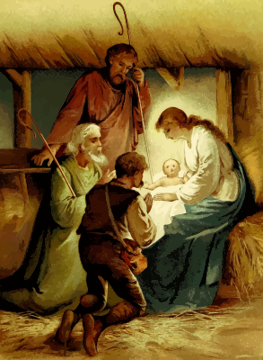 - Christ Christian Christmas Jesus Joseph Mary Semi-Realistic People baby bible birth nativity shepherd stable