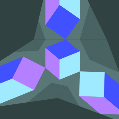 To top that, the image is cloned and transformed so that each clone has a face in the shape of a square. Such affine transformation is handy if you want to map a pattern to the faces of the cube, although this image goes the opposite direction with the cloning for the aesthetic.